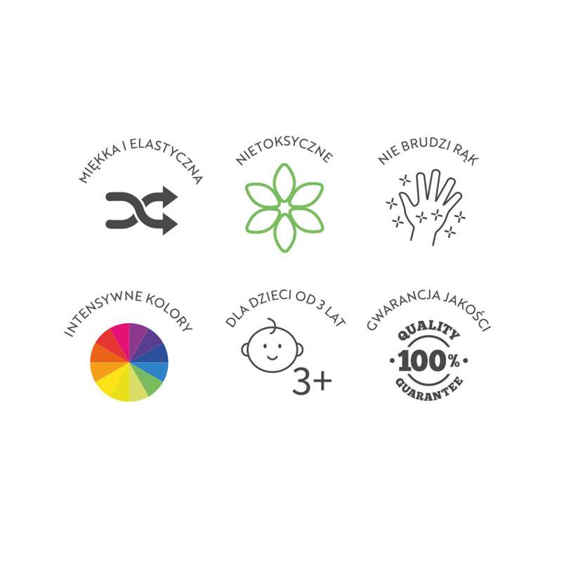 Produkt wielofunkcyjny – doskonale nadaje się do budowania figurek, wycinania kształtów foremkami oraz wyklejania mozajek na papierze